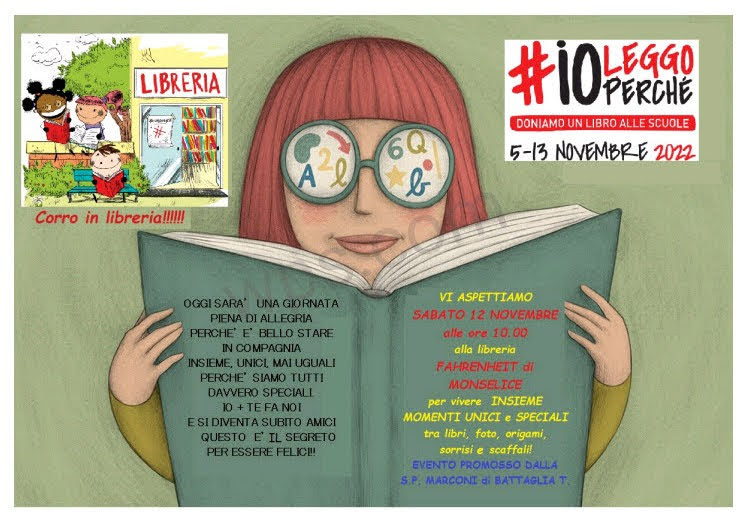 Grazie a i nostri Super Genitori di Battaglia per aver partecipato con entusiasmo e generosità, anche quest'anno, al Progetto di "Ioleggoperchè" e donato, a sostegno della nostra colorata aula lettura, tanti bellissimi libri.Aspettiamo ora con trepidazione i nostri Genitori Lettori che, sotto ...