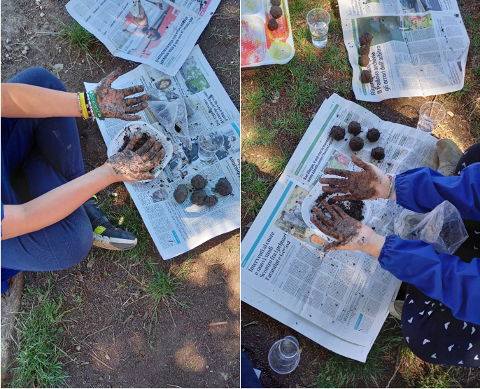 Abbiamo accolto un suggerimento interessante e abbiamo anche noi creato LE BOMBE DI SEMI, facili e divertenti da preparare, Abbiamo preso un bel po' di semi di fiori diversi, li abbiamo mischiati con argilla e terriccio, li abbiamo impastati con acqua e fatto delle "polpette". Le abbiamo lasciate asciugare per due giorni, poi le abbiamo lanciate nei giardini incolti o nei fossi.